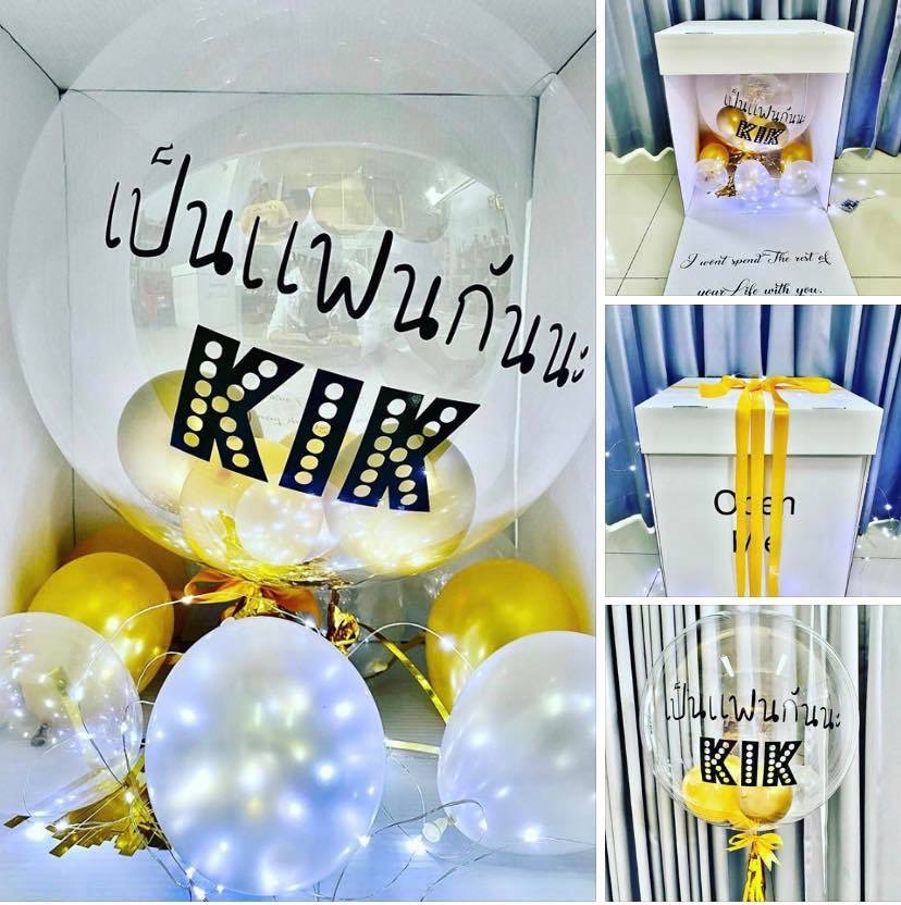 ในแบบที่คุณต้องการ ทั้งข้อความและเฉดสี ต้องการแบบไหน สามารถใส่เข้าไปในกล่องของขวัญสุดพิเศษนี้ และเมื่อถึงเวลาที่คุณจะมอบให้กับแฟนในวันเกิด ก็จะเป็นช่วงเวลาที่ มีทั้งความสวยงามของกล่อง ที่ใส่บอลลูนหลากหลายสี